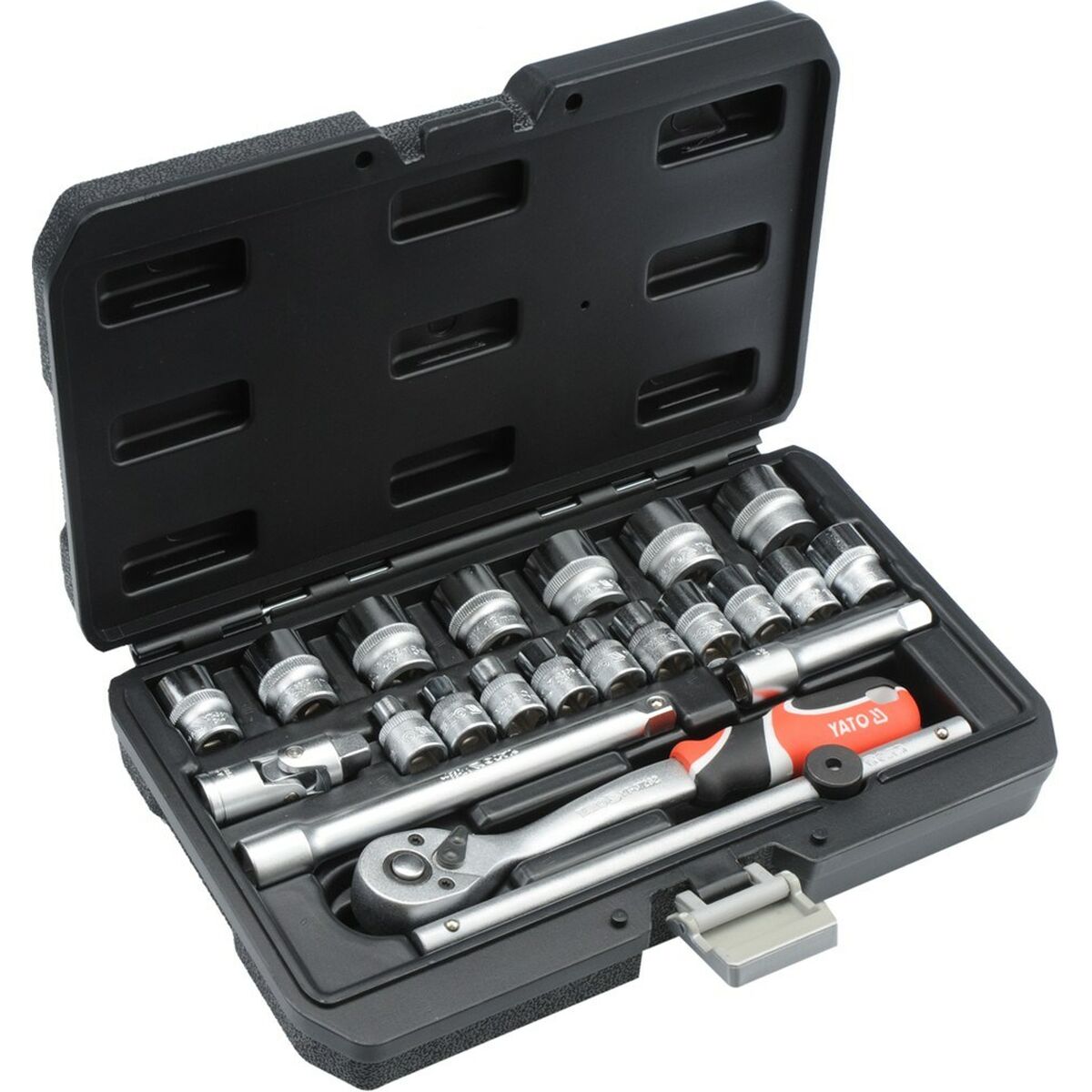Der Werkzeugsatz Yato YT-38561 ist ein unverzichtbares Set für die Heimwerker. Mit einer eleganten schwarzen Farbe und hergestellt aus strapazierfähigem Chrom-Vanadium-Stahl, ist dieses Set sowohl langlebig als auch zuverlässig. Enthalten sind eine Verlängerung und eine Ratsche, die Ihnen helfen, Ihre Projekte mühelos abzuschließen.